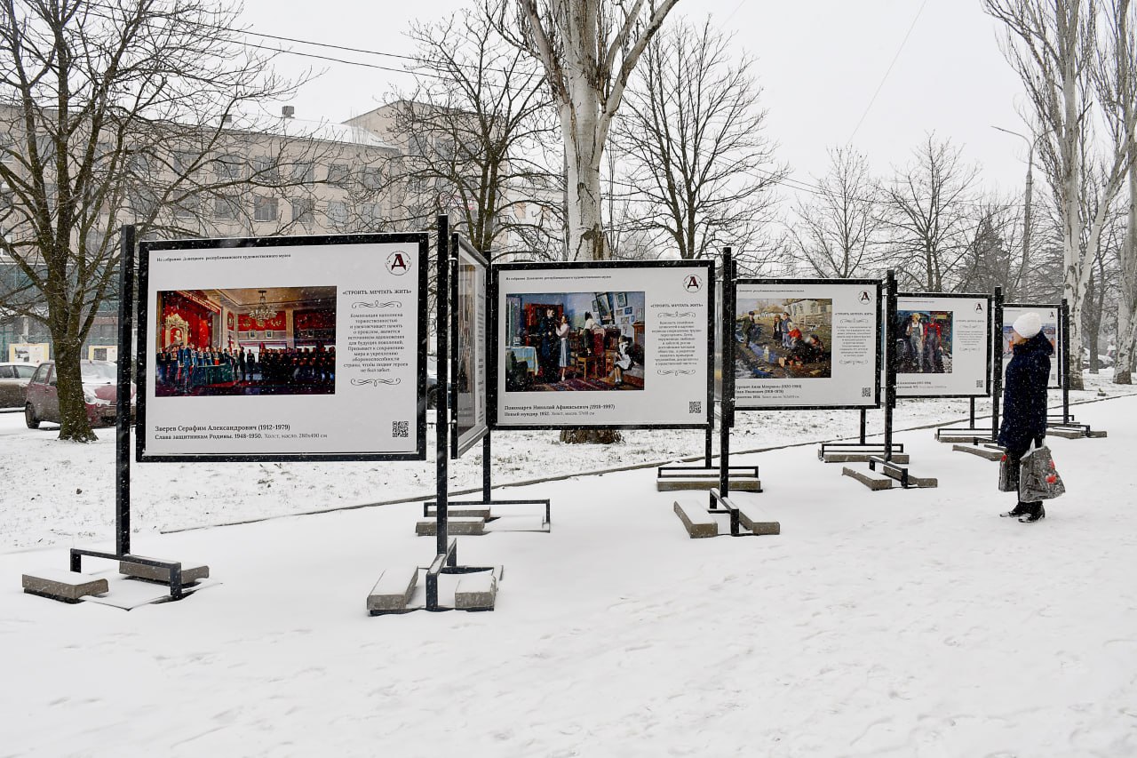 «Строить. Мечтать. Жить» – под таким названием открылась уличная планшетная выставка из собрания Донецкого республиканского художественного музея. Мы постепенно готовимся к открытию музея после масштабного ремонта и уже начинаем вас радовать новыми встречами с искусством.