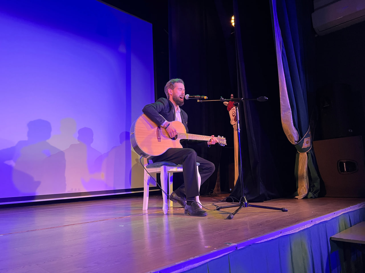 В праздничном концерте приняли участие артисты театра Константин Гамянин и Дмитрий Туев, которые сполнили композиции «Мурка» из к/ф «Место встречи изменить нельзя», «Атас» группы Любэ и «Песню о друге» В. Высоцкого из к/ф «Вертикаль».