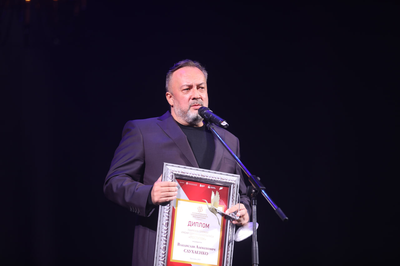 В ответ Владислав Слухаенко, генеральный директор-художественный руководитель Донецкого республиканского академического молодежного театра, поблагодарил за признание работы: «Я считаю, что это не моя заслуга, а в первую очередь заслуга всего коллектива. Театр в принципе – это коллективное творчество, театр не может быть представлен одним человеком. Все, что сделано – это сделано моим коллективом. С началом СВО ни один человек не покинул театр, все продолжили работать. Из театра более 10 человек ушло на СВО. А мы закрываем наш культурный фронт, трудимся для наших земляков, много гастролируем, знакомим с нашим творчеством, с нашим регионом. И сейчас одним из флагманских спектаклей является спектакль «Шахтерская дочь», поставленный по поэме нашей землячки Анны Ревякиной о событиях 2014 года в Донбассе, с которыми, как выяснилось, к сожалению, в большинстве регионов никто ничего не знает. Для большинства людей во всей России все началось с началом СВО. А с истоками событий, что происходило, как происходило с людьми в Донбассе приходится знакомить нам».