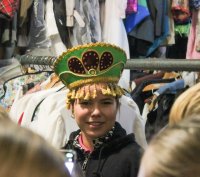 Затем переместились в гримёрный цех – место, где происходит волшебное преображение! В Донецком РАМТе гримёры владеют искусством пастижа – создания париков, бород и усов из разных материалов. Мастера рассказали, как с помощью косметики, париков и накладных элементов можно мгновенно «состарить» или «омолодить» актёра, превратить его в сказочное чудовище или благородного принца, и разрешили примерить парики персонажей детских спектаклей.
