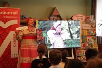 Добрый медведь Михаил Потапович и былинная красавица Любослава рассказали ребятам о таинственном значении элементов русской одежды. В читальном зале библиотеки был организован показ традиционных народных женских костюмов. Кульминацией показа стала демонстрация белоснежного наряда Царевны Лебедь, расшитого русским жемчугом.