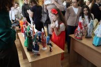 В холле библиотеки была развернута яркая экспозиция, посвящённая многообразию форм декоративно-прикладного искусства. Участницы творческого объединения «Вдохновение» представили вниманию школьников авторские куклы в традиционных народных костюмах, расшитые пояса, обережные костюмы, изготовленные своими руками, вышивку, кружево и многое другое.