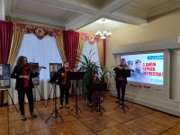 В церемонии открытии выставки «…А превратились в белых журавлей» принял участие струнный ансамбль «Дива-квартет» под управлением Оксаны Сарычевой.