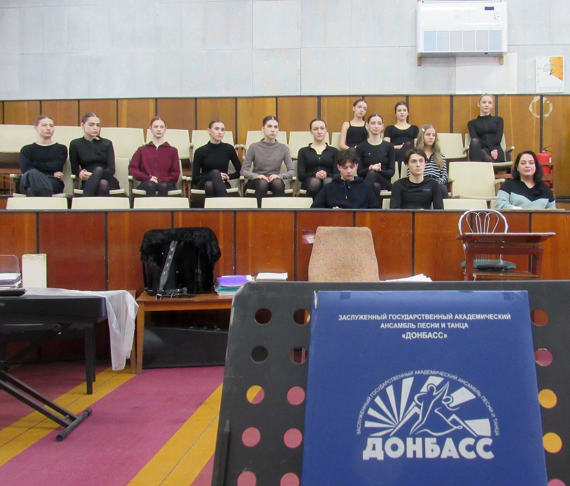 В преддверии празднования Дня артиста, который в нашей стране будет отмечаться 17 января, на базе Заслуженного государственного академического ансамбля песни и танца «Донбасс» состоялась встреча артистов коллектива с учащимися Донецкого колледжа культуры и искусств и воспитанниками хореографической студии «Донбасса».