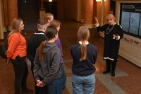 Побывали на Основой, Малой и Новой сценах на репетициях трёх премьерных спектаклей. В ходе экскурсии ребята узнали, что в театре служат не только представители творческих профессий. Они познакомились с особенностями работы сотрудников электроцеха, преобразились с помощью гримёров-постижёров, а во время визита к костюмерам смогли примерить на себя образы героев популярных детских сказок.