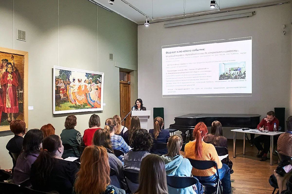В формате он-лайн представила доклад «Память о героях. Организация выставочного проекта «НебоСВОд Донбасса» директор Донецкого республиканского художественного музея, член союза художников России Екатерина Калиниченко.