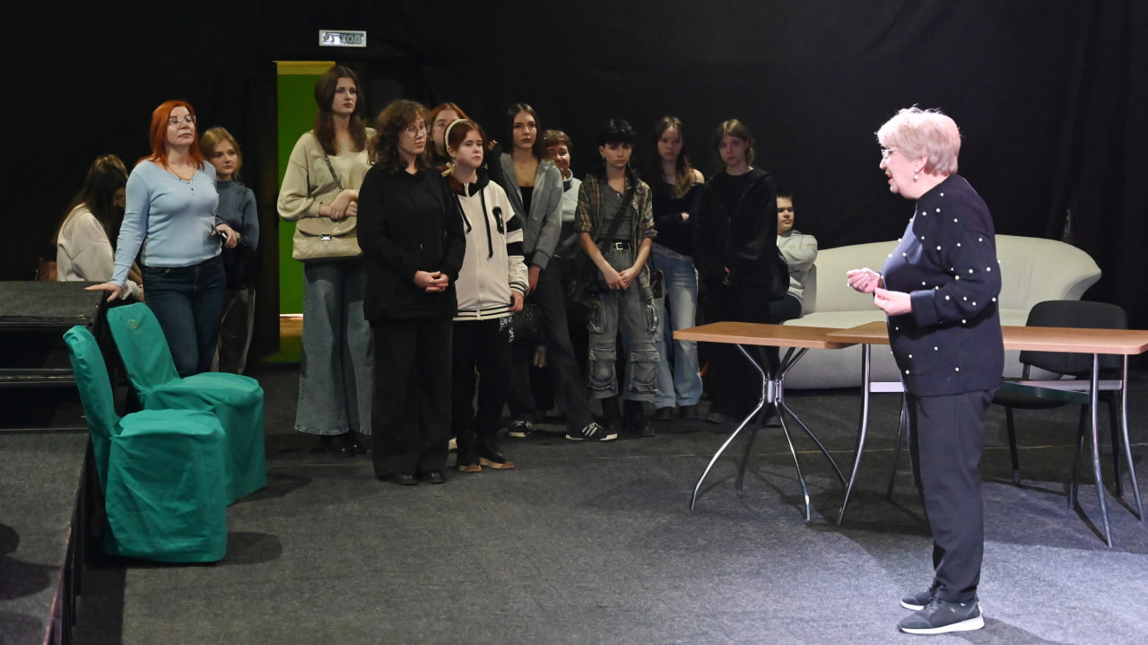 Побывали студенты на сценических площадках, в репетиционных залах и цехах, увидели работу костюмеров, гримеров-постижёров, закройщиков и швей. Студентка колледжа Даша Дюдина не в первый раз была за кулисами муздрамы. Девушка пять лет занималась в театральной школе-студии «Перспектива», вместе с другими детьми выходила на сцену в рок-опере «Юнона и Авось». Сейчас она обучается по специальности архитектор, в выборе будущей профессии ещё не определилась, но вполне возможно придёт на работу в театр. Как и выпускница колледжа строительства и архитектуры, начальник костюмерного цеха МДТ имени М.М. Бровуна Ольга Даниленко.