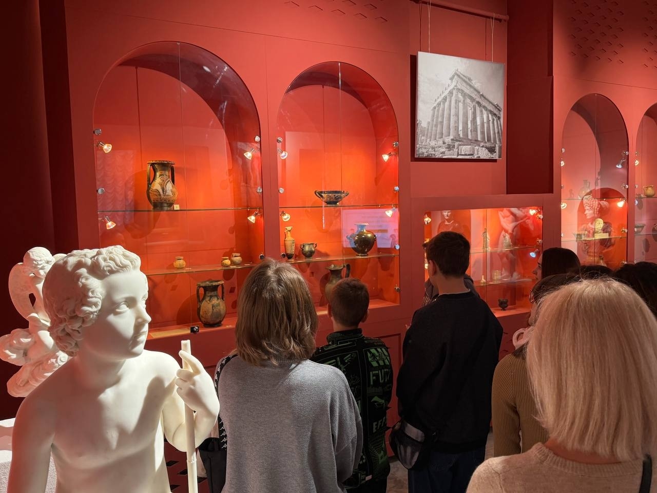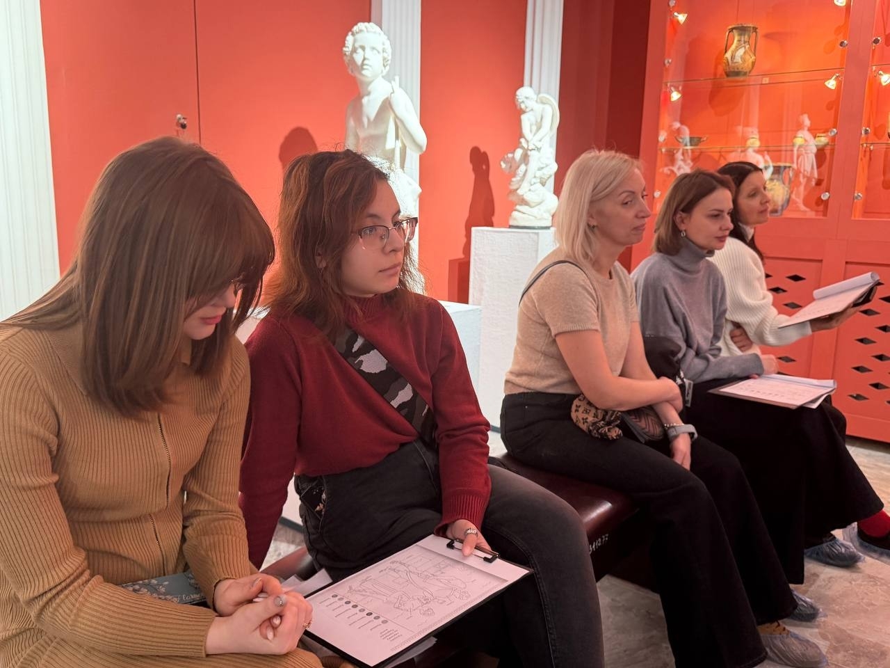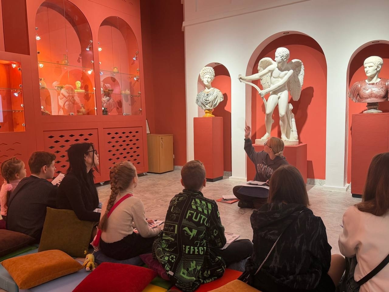 Лекционная часть была дополнена экскурсионной программой, в ходе которой посетители смогли рассмотреть скульптурные слепки с античных оригиналов, среди которых — образы куроса, Эрота, натягивающего лук, и легендарного певца Орфея. Через мифологические сюжеты участники встречи вновь прикоснулись к вечным темам любви, судьбы и человеческих испытаний, которые вдохновляли мастеров античного искусства на протяжении веков.