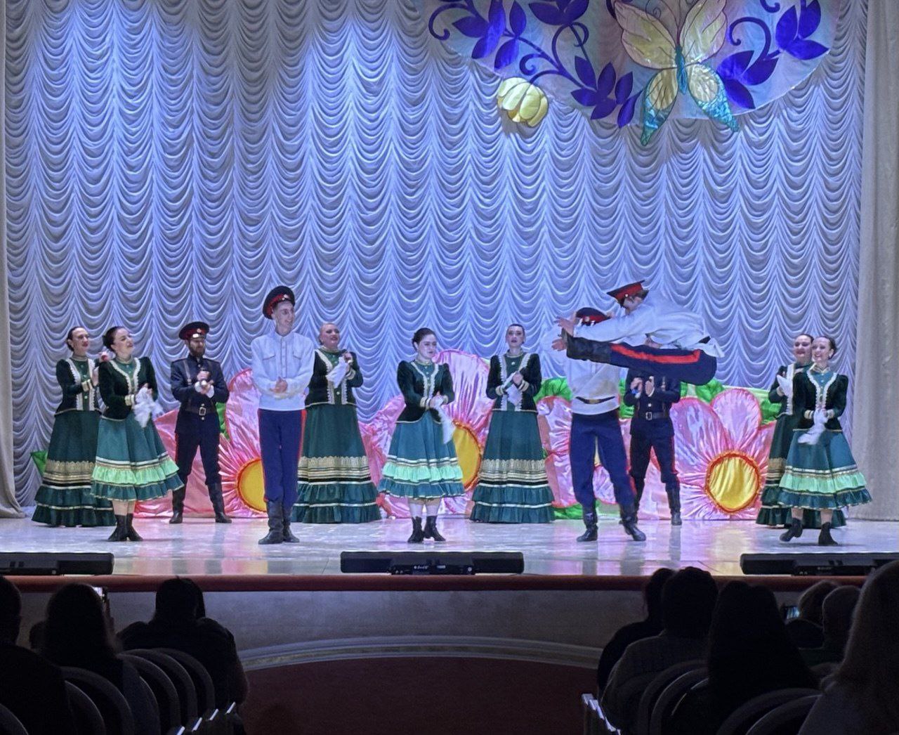 Затем наступил самый яркий момент вечера – концертная программа. Зал наполнился живым, искрящимся звучанием, которое словно пульсировало энергией, красотой и надеждой. Зажигательные казачьи песни, полные удали и оптимизма, заставляли сердца биться в унисон с ритмом. Стремительные, энергичные танцы, покоряющие своей виртуозностью, сменялись плавными, лирическими мелодиями, трогающими до глубины души.