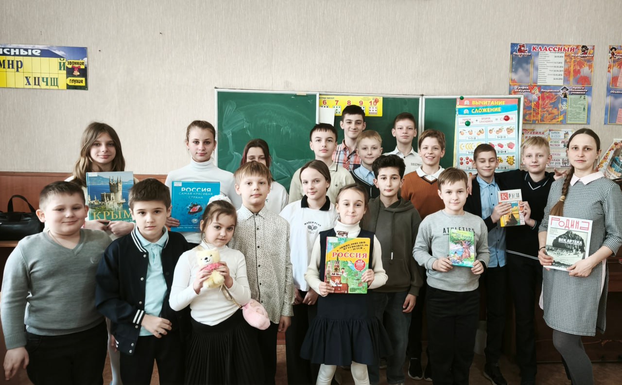 18 марта, в День воссоединения Крыма с Россией, библиотекарь Донецкой республиканской библиотеки для детей имени С.М. Кирова посетила обучающихся донецкой школы № 2 имени Героя Советского Союза Ю.М. Двужильного с историческим экскурсом «Крым и Россия – общая судьба».