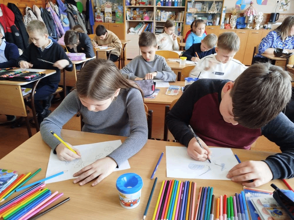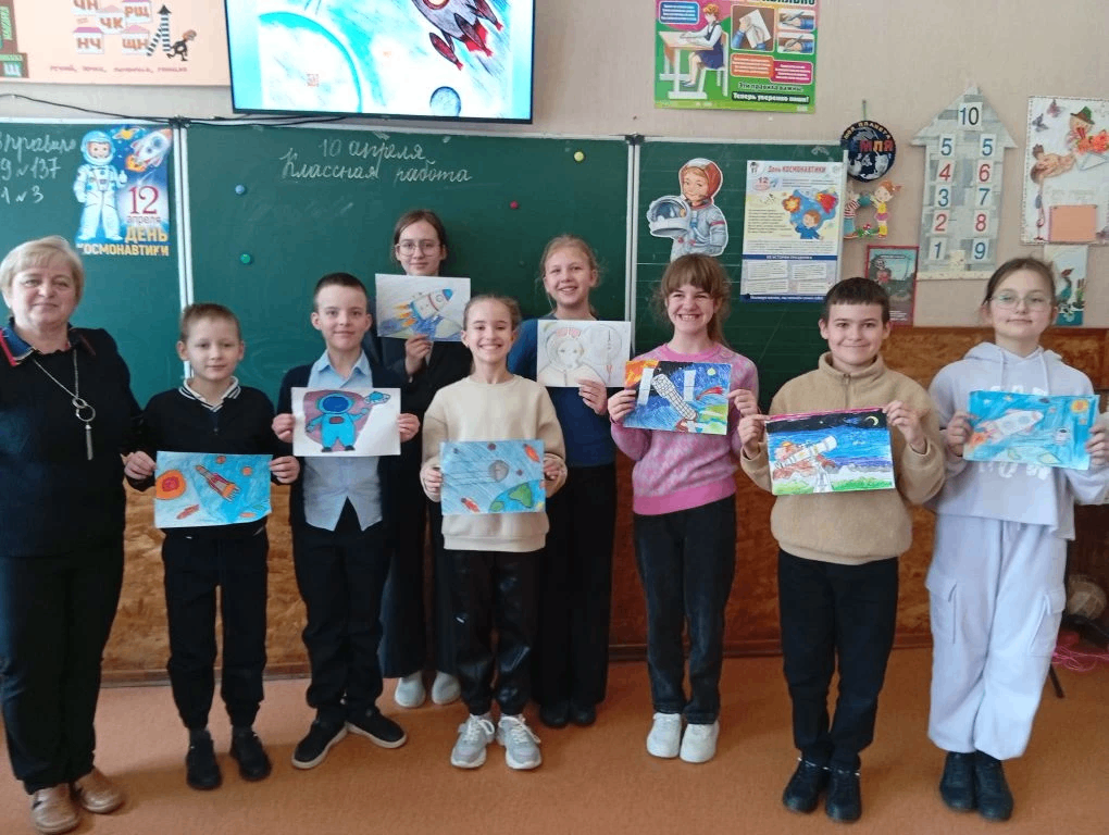 Для младших школьников – обучающихся 2-го и 3-го классов образовательного учреждения «Школа № 2 имени Героя Советского Союза Ю. М. Двужильного г.о. Донецк» – были организованы литературный дилижанс «Удивительный мир космоса» и мастер-класс «В безбрежном океане звёзд». Во время мероприятий ребята узнали о космонавтах, планетах, космических кораблях, спутниках и станции МКС, обсуждали оттенки межзвёздного пространства и рисовали красивые космические пейзажи, вкладывая в свои работы всю фантазию и старание.