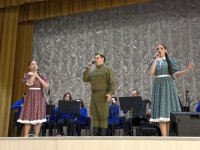 Вниманию зрителей солисты-вокалисты Евгений Васькин, Анатолий Миняйло, Валерия Лелеко и Анастасия Дмитриева в сопровождении эстрадно-симфонического оркестра ансамбля представили программу, в которую вошли произведения о войне и Победе – как военных лет, так и уже современные.