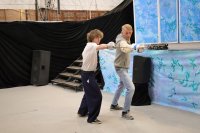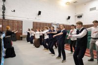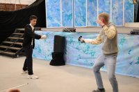 Вторая часть мастер-класса прошла под руководством артиста Игоря Сигнаевского. Он провёл урок сценического фехтования, где участники освоили базовые приёмы боя. Ребята узнали много интересного о холодном оружии и научились правильно с ним обращаться. Опытный наставник показал, как держать атрибут, управлять рукой, защищаться и выполнять различные выпады. В процессе обучения юные актёры почувствовали себя героями исторический постановок.
