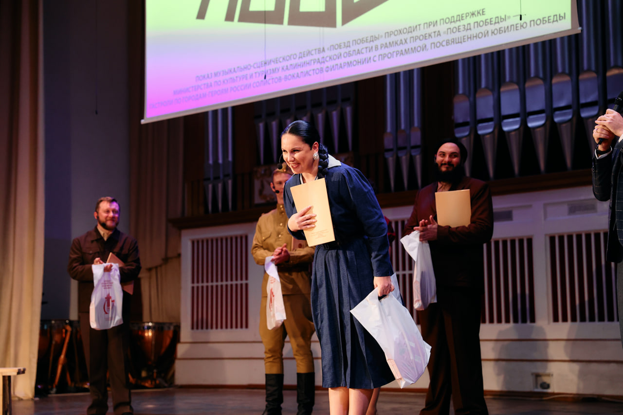 В Донецкой филармонии 4 ноября состоялось музыкально-сценическое действо «Поезд Победы». В рамках программы «Под одним небом» артисты из Калининградской областной филармонии имени Е. Ф. Светланова поздравили дончан с Днём народного единства.