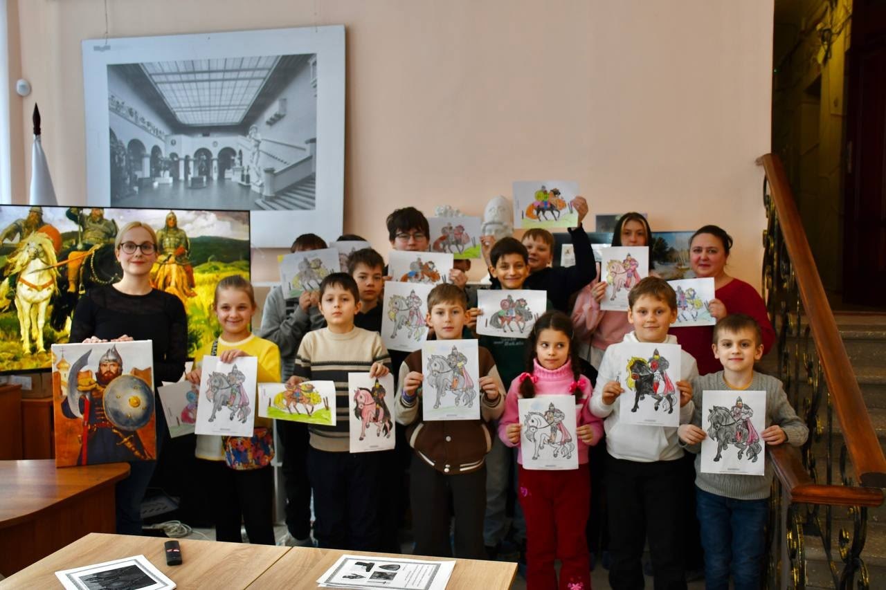 22 февраля, в преддверии Дня защитника Отечества, в Центре художественно-эстетического воспитания «Геликон» Донецкого республиканского художественного музея, при поддержке Министерства культуры ДНР состоялось музейное занятие «Воин, герой, защитник: каким был настоящий богатырь?». Гостями встречи стали юные жители Республики, которые на один день превратились в настоящих исследователей героического прошлого нашей державы.