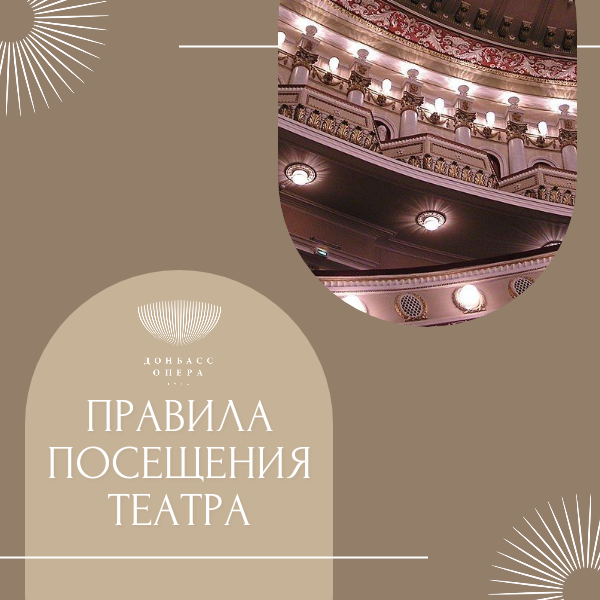 Слово «театр» вызывает ассоциации с предвкушением: шуршание занавеса, открывающего сцену, и угасающий свет в зале. Это событие, сравнимое с праздником. Посещение театра – это действительно праздник. Чтобы вашу встречу с прекрасным миром театра не омрачали досадные мелочи, пожалуйста, ознакомьтесь с правилами, которые обеспечат вам приятное посещение Донбасс Оперы: