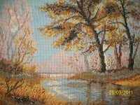- Вышитые крестом картины, где каждый стежок – это кропотливый труд и частичка души мастерицы. Сюжеты вышивок дополняют живописную летопись осени, добавляя ей домашнего, камерного звучания.