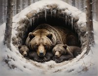 Берлогу ему помогала приготовить сама Матушка-Зима: она заботливо завесила вход хлопьями снега, будто пушистой шторкой, чтобы ни один шорох не потревожил спящего.