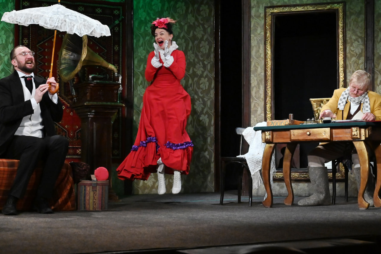 Донецкий государственный академический музыкально-драматический театр имени М.М. Бровуна продолжает традицию русского театрального искусства поставкой «Три шутки», демонстрируя приверженность классической подаче материала.