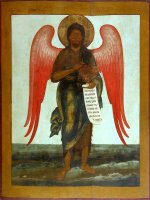 Подтверждением вышесказанного является иконографическое изображение Иоанна Предтечи с ангельскими крыльями, которое основано на тексте евангелия от Матфея: «Се Азъ посылаю Ангела Моего перед Лицом Твоим, иже уготовить путь Твой пред Тобою». В собрании Донецкого республиканского художественного музея находится икона Иоа́нн Предте́ча Ангел пустыни (XVIII в. Россия). В стилистике иконы традиционность и веяния новой живописи определяют эстетику русской иконописи переходного периода. Эта икона – одна из самых совершенных по своему живописному уровню в коллекции музея.