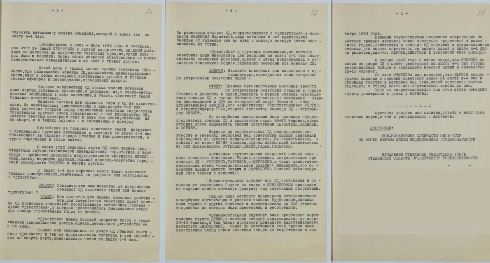 Согласно рассекреченным архивным документам, в течение двух лет почти ежедневно в шахту сбрасывались тела до 200 расстрелянных или замученных людей. По свидетельствам очевидцев, жертв расстреливали прямо перед шурфом, после чего сбрасывали вниз. В документах описаны случаи, когда вместе со взрослыми убивали младенцев, а порой детей сбрасывали в шахту живыми. В 1983 году на месте трагедии был воздвигнут мемориал, изображающий два шурфа, опрокинутую вагонетку и развевающееся каменное знамя. В 2024 году по поручению Президента РФ Владимира Путина мемориал был реконструирован, а рассекреченные документы ФСБ переданы в музей для использования в деле о признании геноцида народа Донбасса.