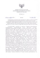Приказ от 15.09.2025 г. № 199-ОД «О проведении дополнительного конкурсного отбора на право получения единовременной компенсационной вылпаты работниками культуры, прибывшими (перехавшими) на работу в сельские населенные пункты, либо рабочие поселки, либо поселки городского типа, либо города с числом жителей до 50 тысяч человек на территории Донецкой Народной Республики».
