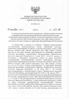 Приказ от 17.10.2025 г. № 234-ОД «О проведении дополнительного конкурсного отбора на право получения единовременной компенсанционной выплаты работниками культуры, прибывшими (переехавшими) на работу в сельские населенные пункты, либо рабочие поселки, либо поселки городского типа, либо города с числом жителей до 50 тысяч человек на территории Донецкой Народной Республики»